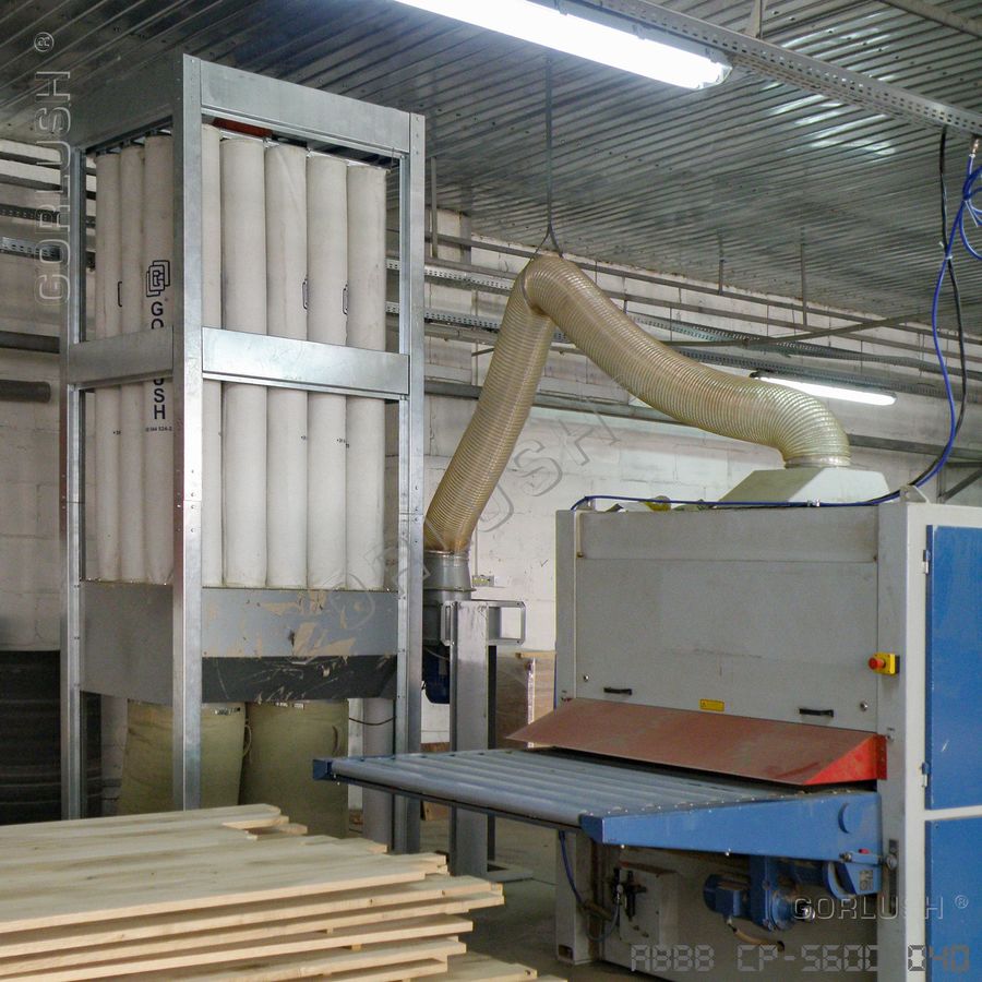 Аспирационные установки СП - 5600, 7000, 9000 (фильтр в виде мешков, изготовленных из полиэфирного нетканого полотна плотностью 180...320 г/м², с производительностью, соответствующей цифровому индексу наименования). Предназначены для отделения стружки и пыли различного вида и размера при подключении к деревообрабатывающему оборудованию большой мощности и производительности, такому как четырехсторонние фрезерные, многопильные станки или группы стандартных станков (фуговальные, рейсмусные, фрезерные). Предназначены для подключения оборудования на локальном участке или в отдельном помещении;