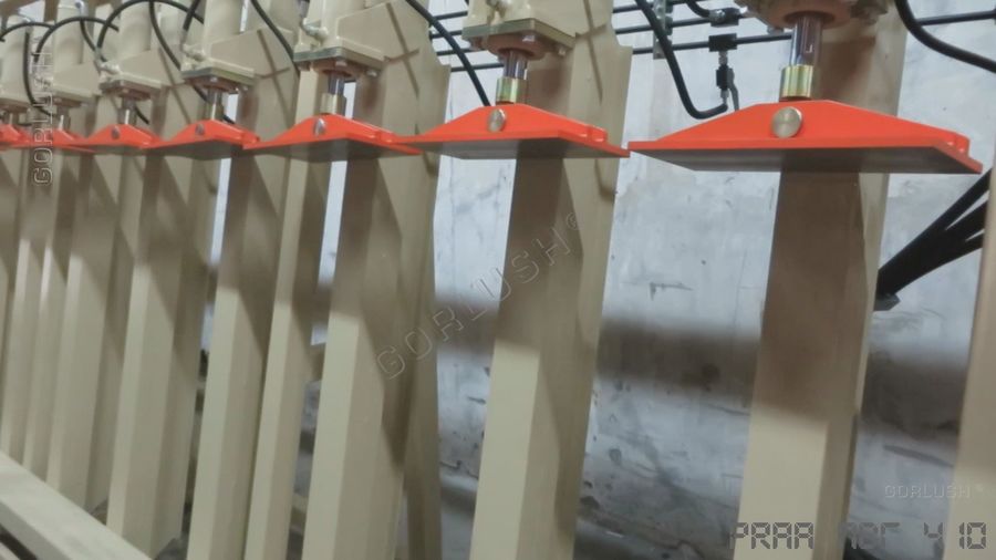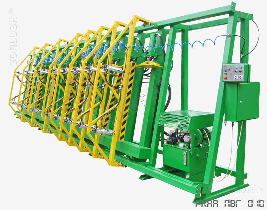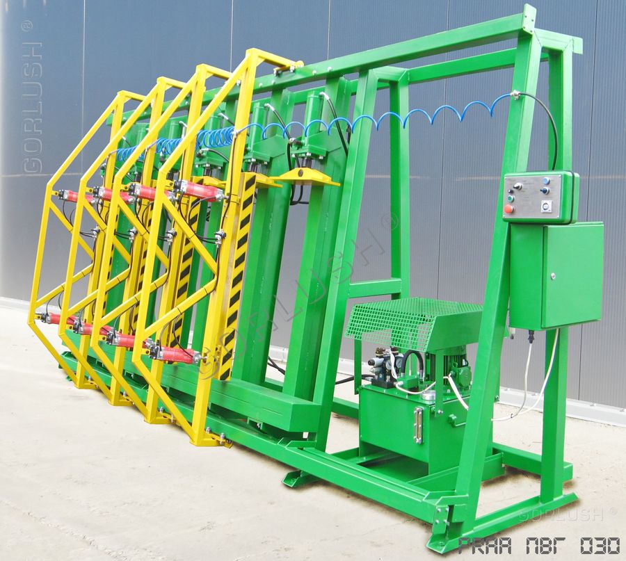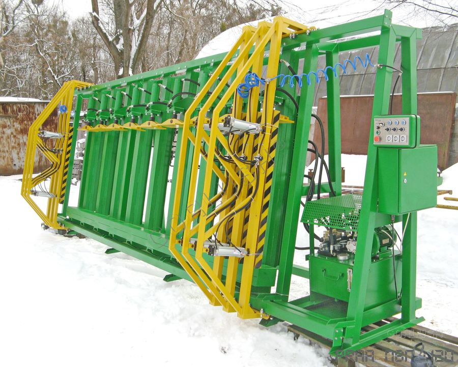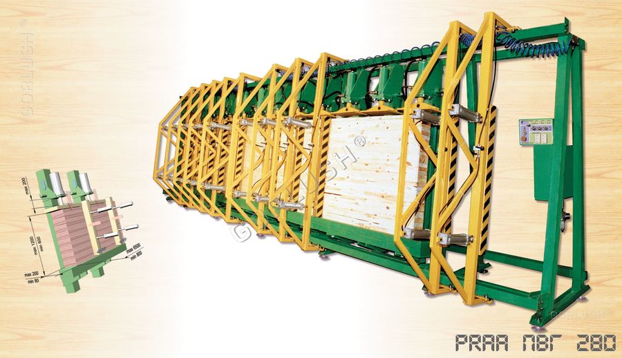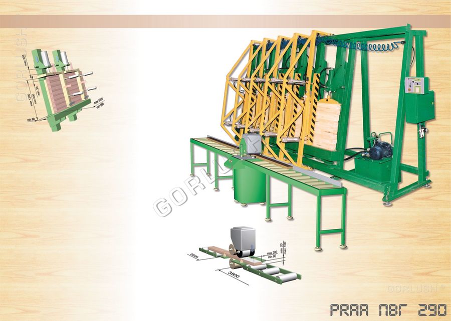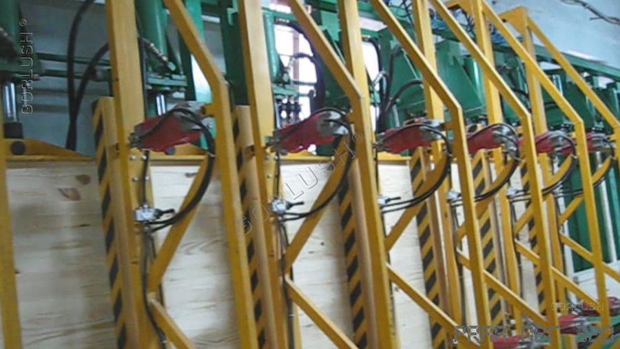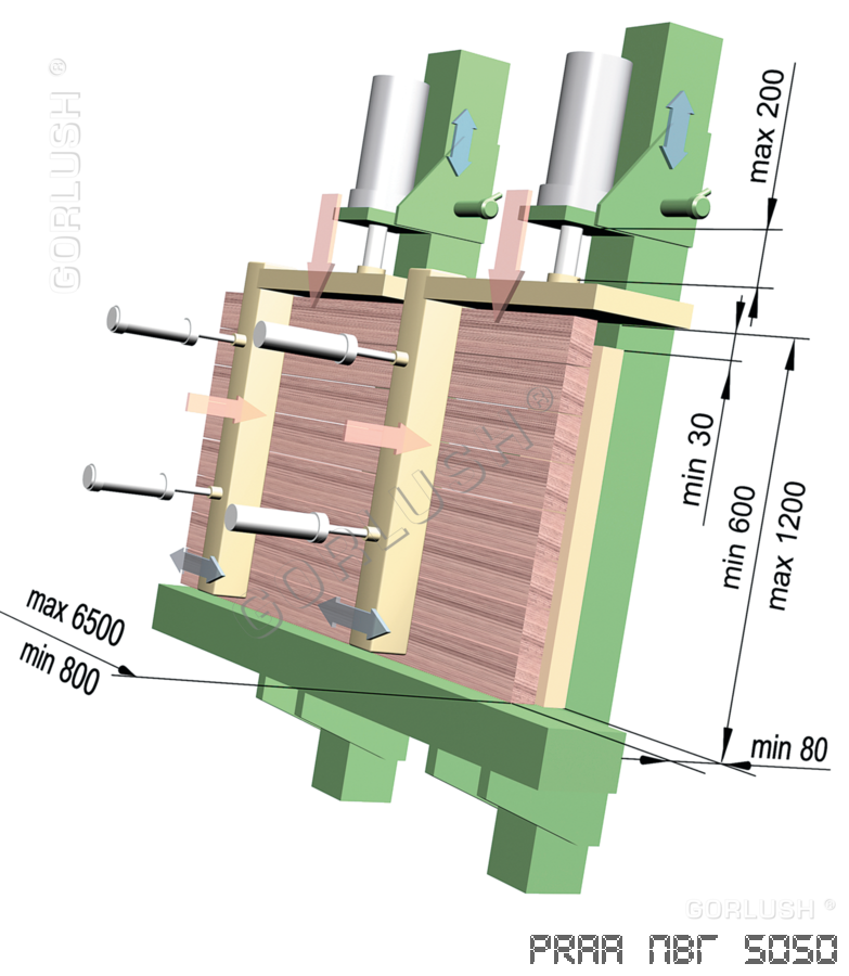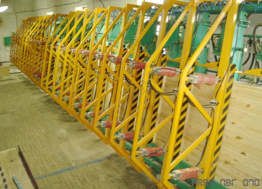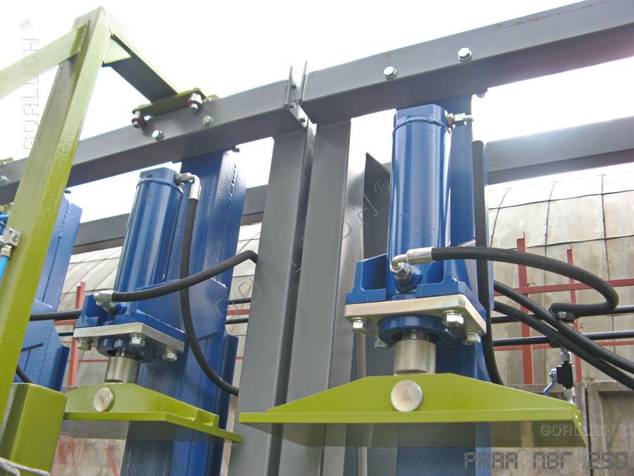 - подвижных кареток силовых гидроцилиндров, позволяющих быстро перенастраивать пресс при изменении высоты пакета от 600 до 1200 мм;