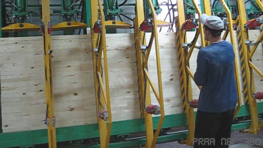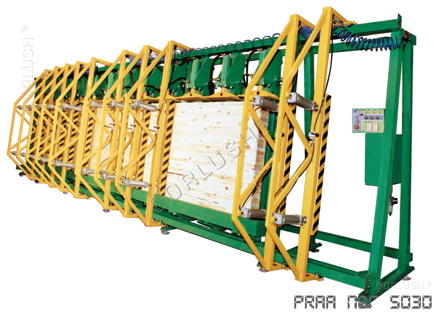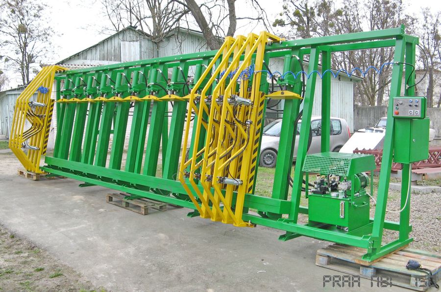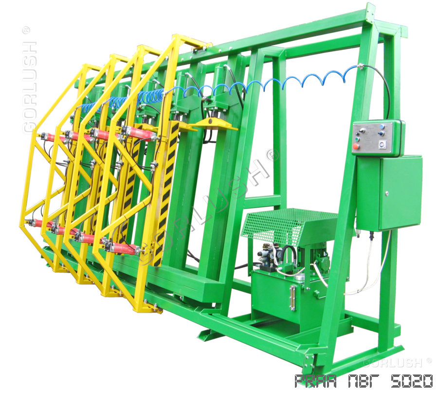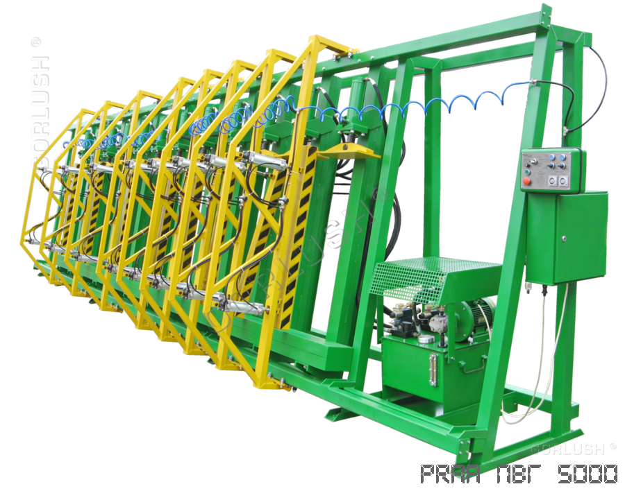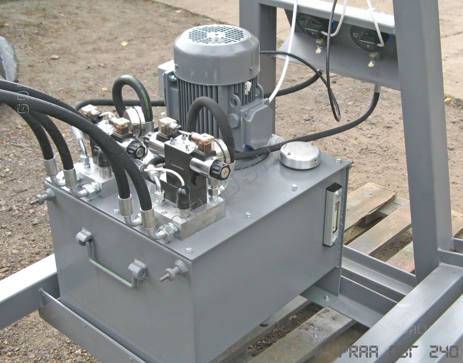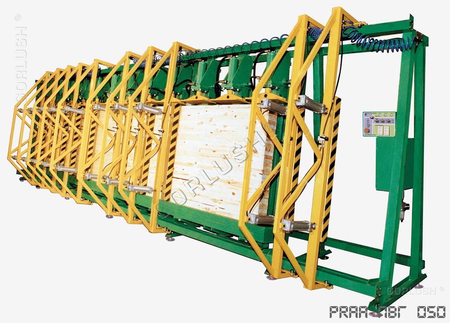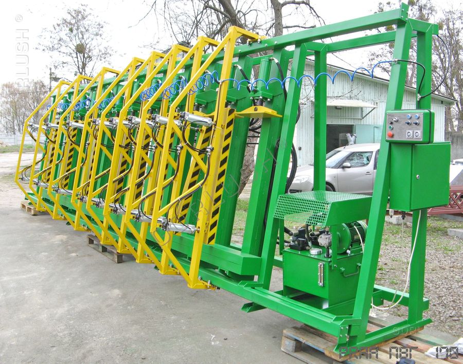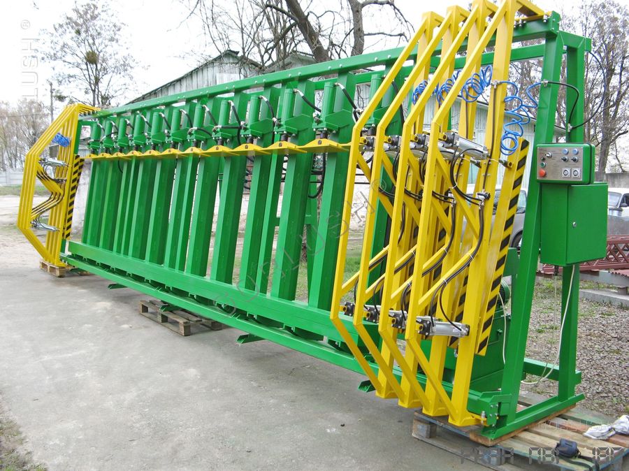 - подвижных кареток силовых гидроцилиндров, позволяющих быстро перенастраивать пресс при изменении высоты пакета от 600 до 1200 мм;