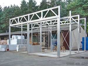 - массовое применение пено- и газоблоков. Необходимо отметить, что строения из данных блоков должны иметь внутри стен металлический каркас для крепления технологического оборудования и проема для ворот. Такое решение уже на практике в течении последних лет хорошо себя зарекомендовало;