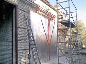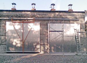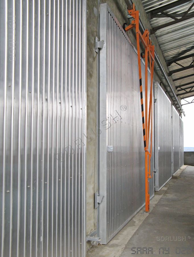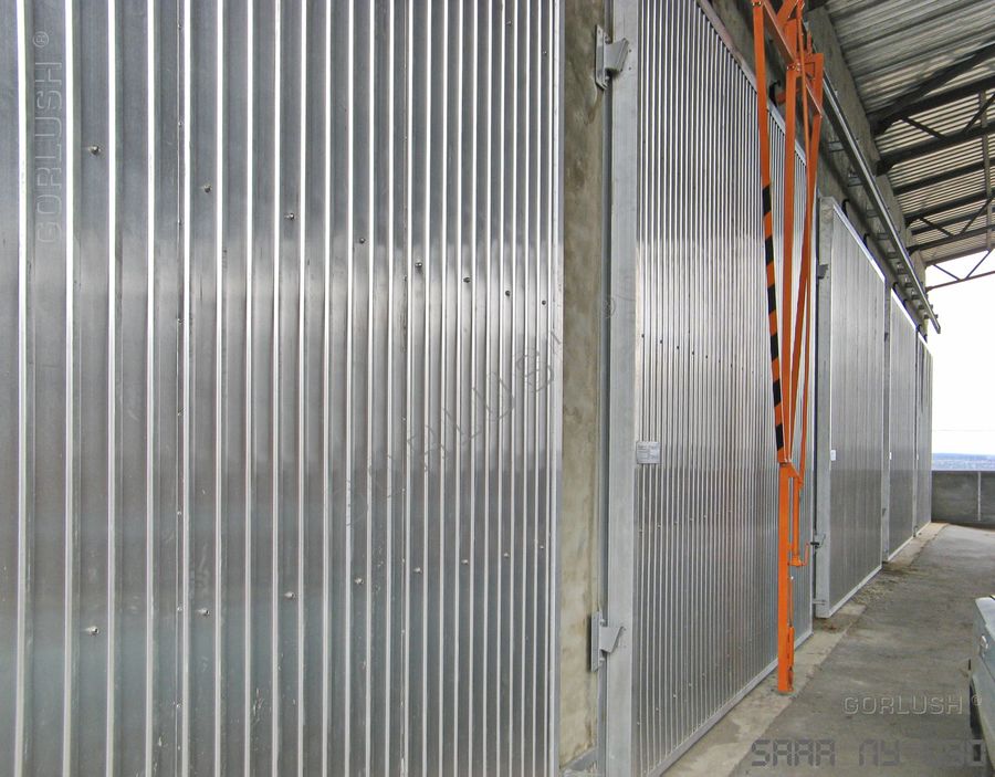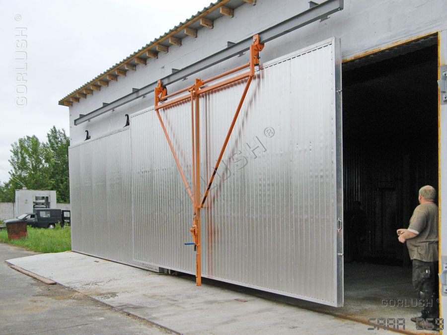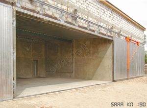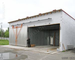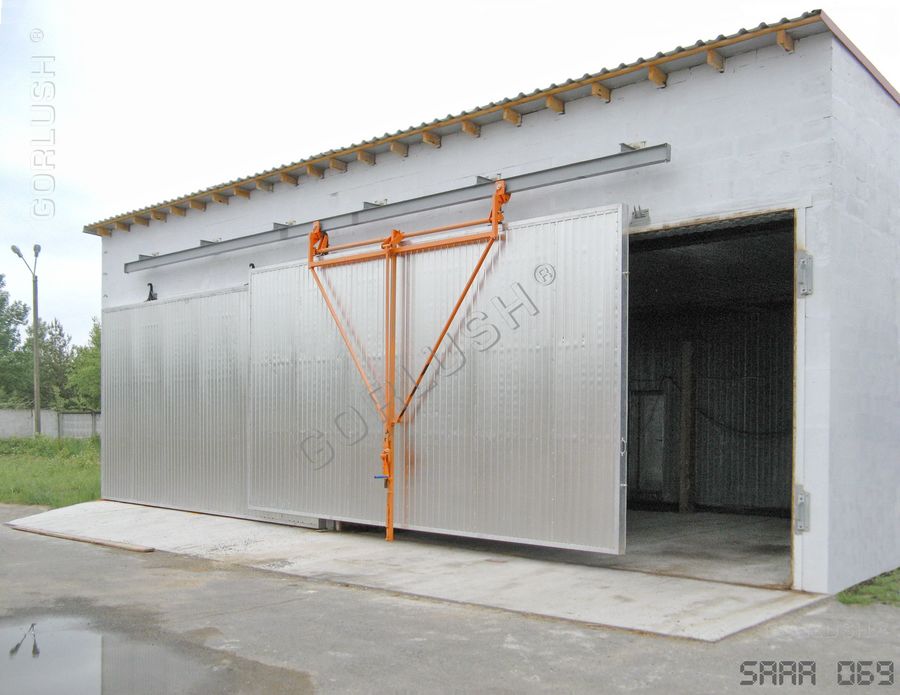 - организация ворот в виде сдвижной панели и ее явные преимущества (низкая стоимость, надежность, обеспечение герметичности, отсутствие поворотных элементов).