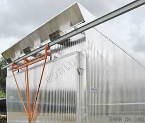 Пример реализации нашим предприятием проекта сушильной камеры нестандартной конфигурации. Ширина 11,5 метров. Ограждающие конструкции - нержавеющие сэндвич-панели с полиуретановым наполнением, все элементы каркаса из нержавеющей стали. Объем загрузки 80 м. куб. Киевская обл., г. Бровары. В камере реализованы все наши разработки. Инверторный источник питания вентиляторов управляется аппаратно-программным комплексом " Гелиос ". Камера управляется дистанционно через наш сайт.