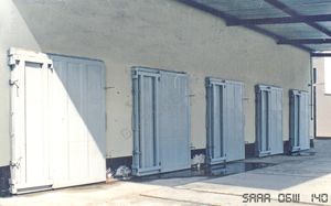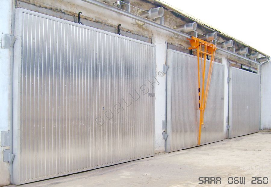 Проем ворот соответствует внутренним габаритам камеры, что очень функционально и удобно при загрузке камеры. Дверная панель сдвижная, иногда может быть складывающейся в вертикальной, а на сегодняшний день есть решения и в горизонтальной плоскости.